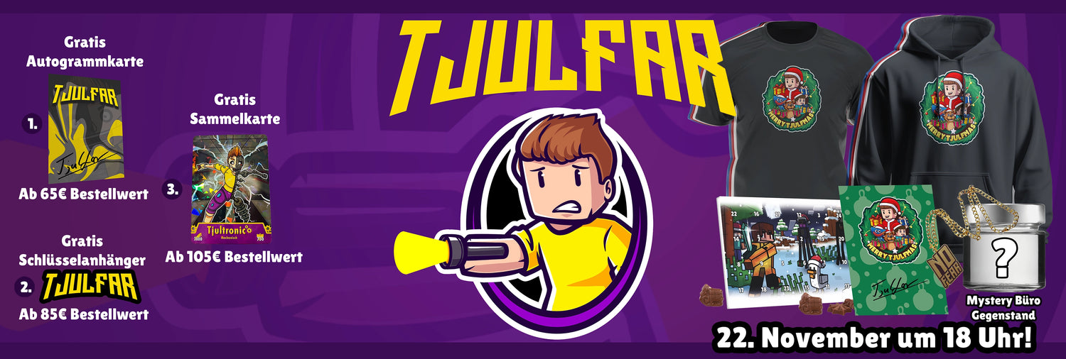 Tjulfar Weihnachts Bundle - T-Shirt + Adventskalender + Kette + Mystery Büro Gegenstand + handsignierte Autogrammkarte