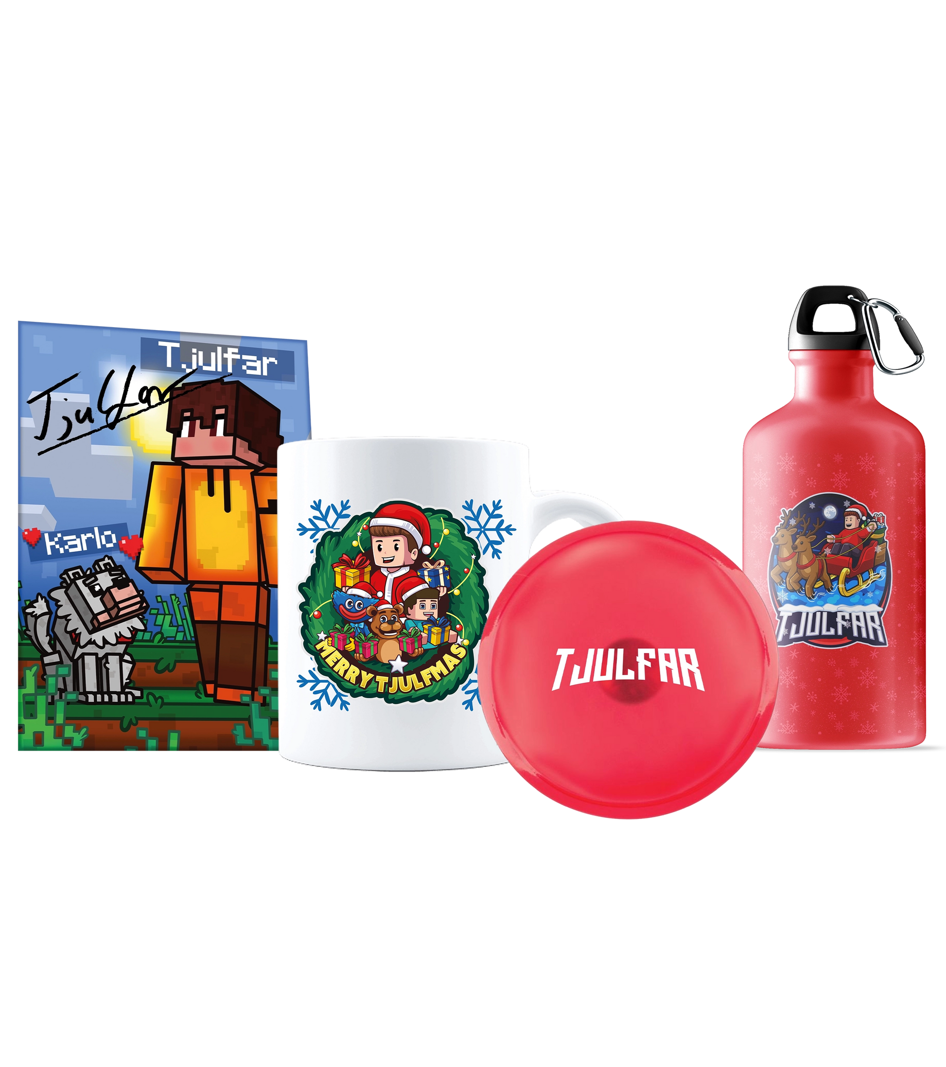Tjulfar Wärme Bundle - Weihnachtsflasche + Handwärmer + Tasse + handsignierte Autogrammkarte